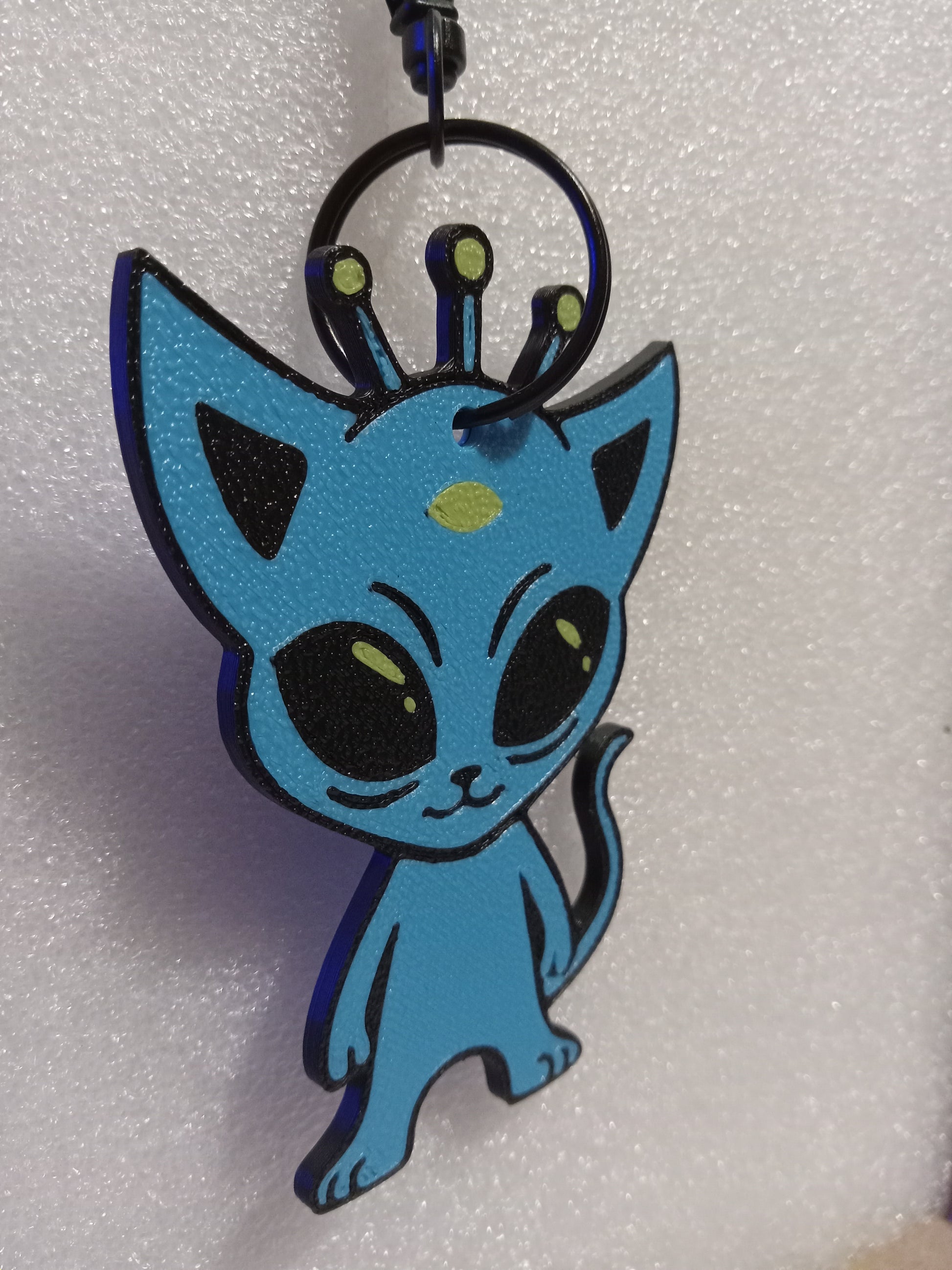 Cosmic Kitty the Alien Cat Keychain - Blue/Green