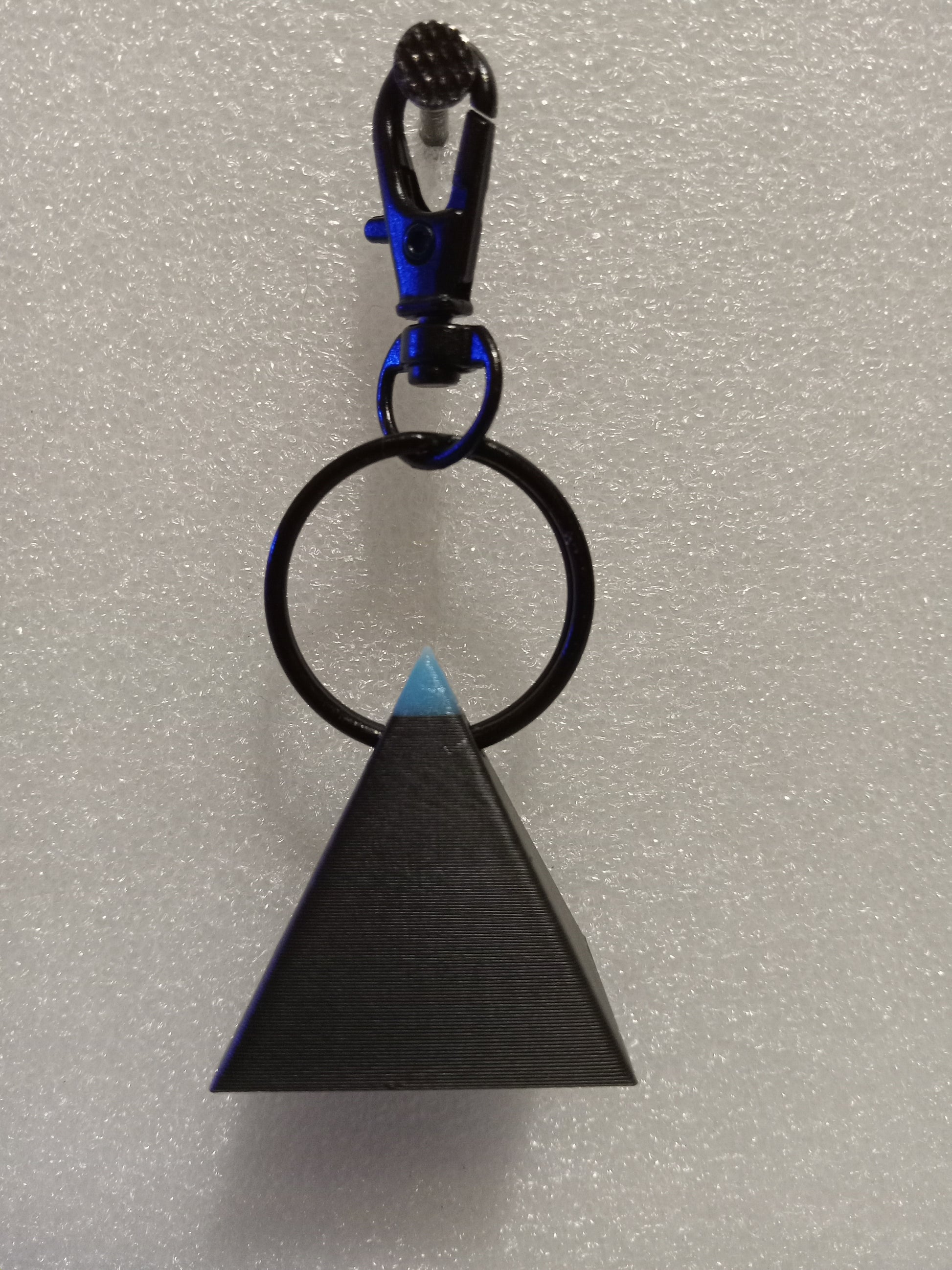 Black Pyramid Keychain with Glow In The Dark Alien Head and Top - Blue