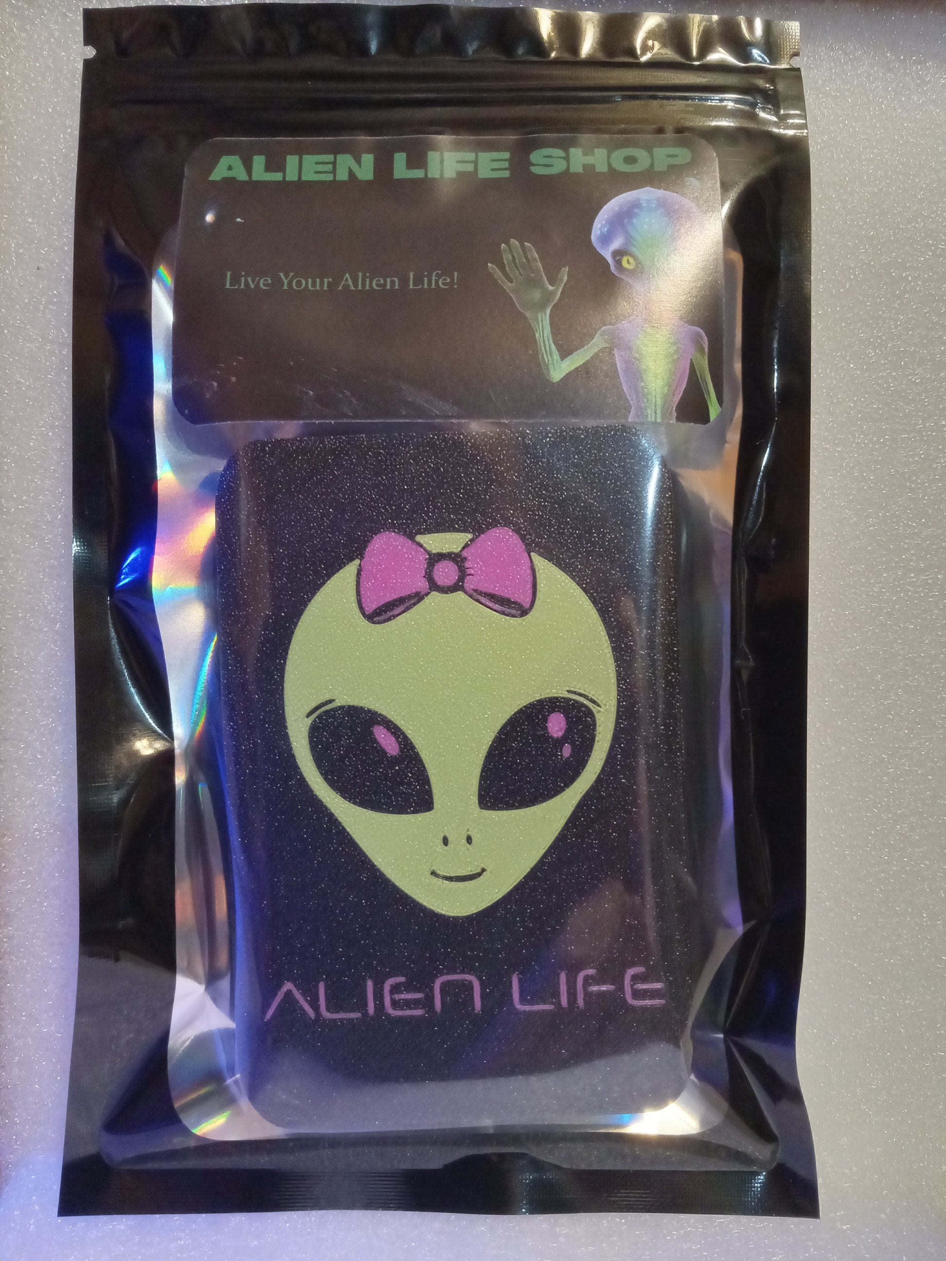 Embody the essence of the galaxy with our unique small box adorned with an endearing alien sporting a stylish bow, radiating an otherworldly aura that transcends planetary boundaries.