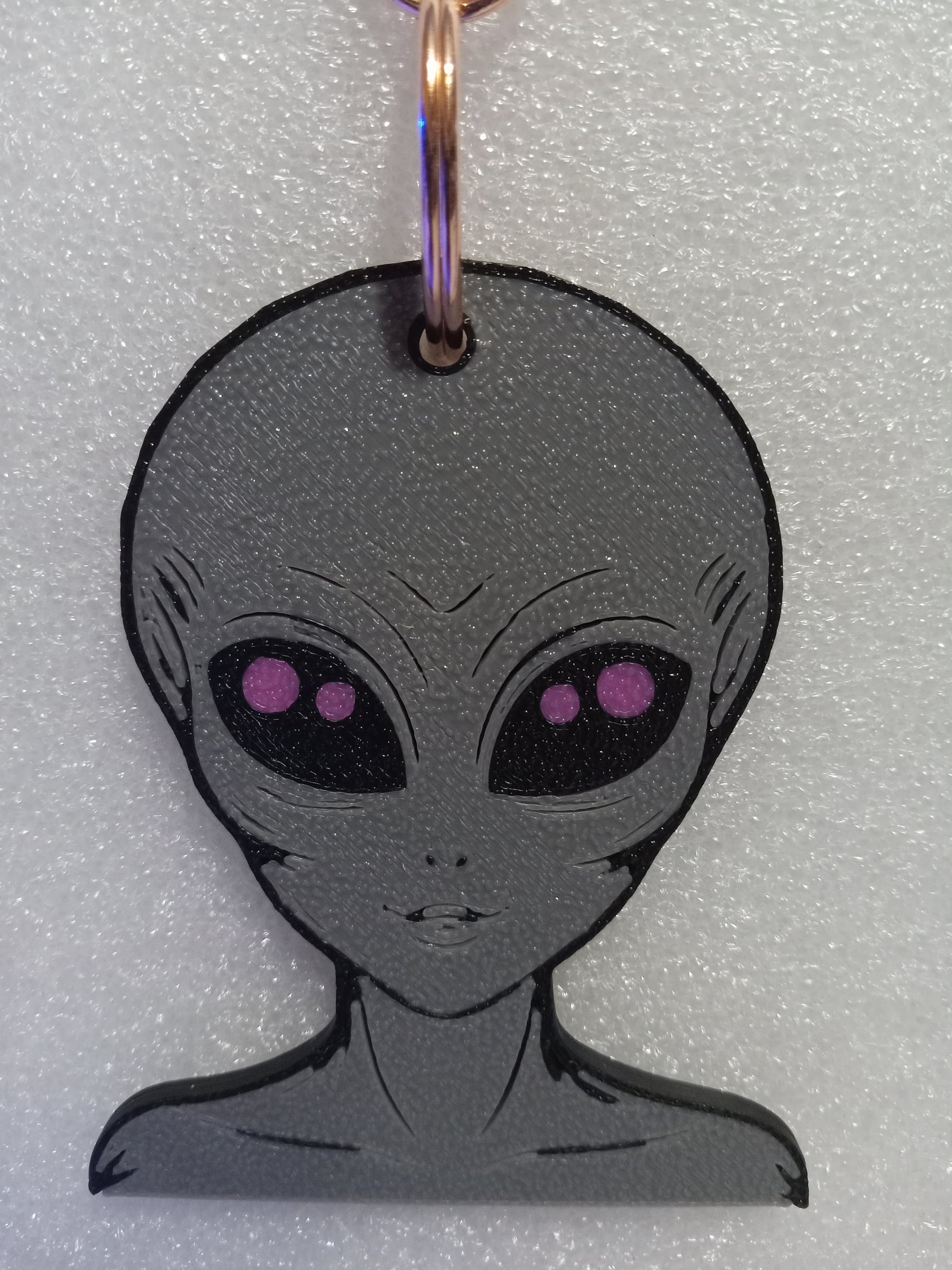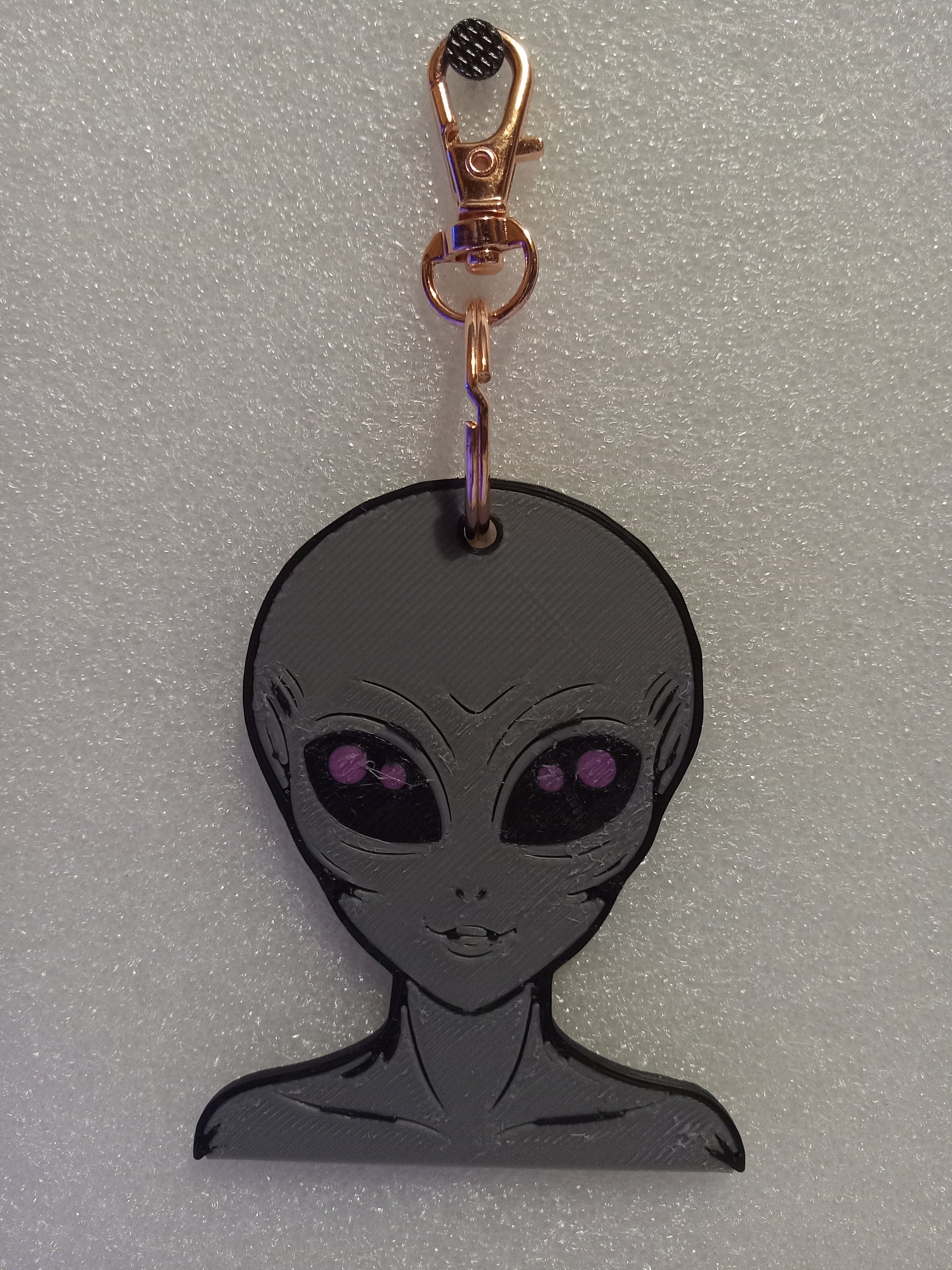 Galactic Grey/Pink Alien Keychain: A Cosmic Ambassador