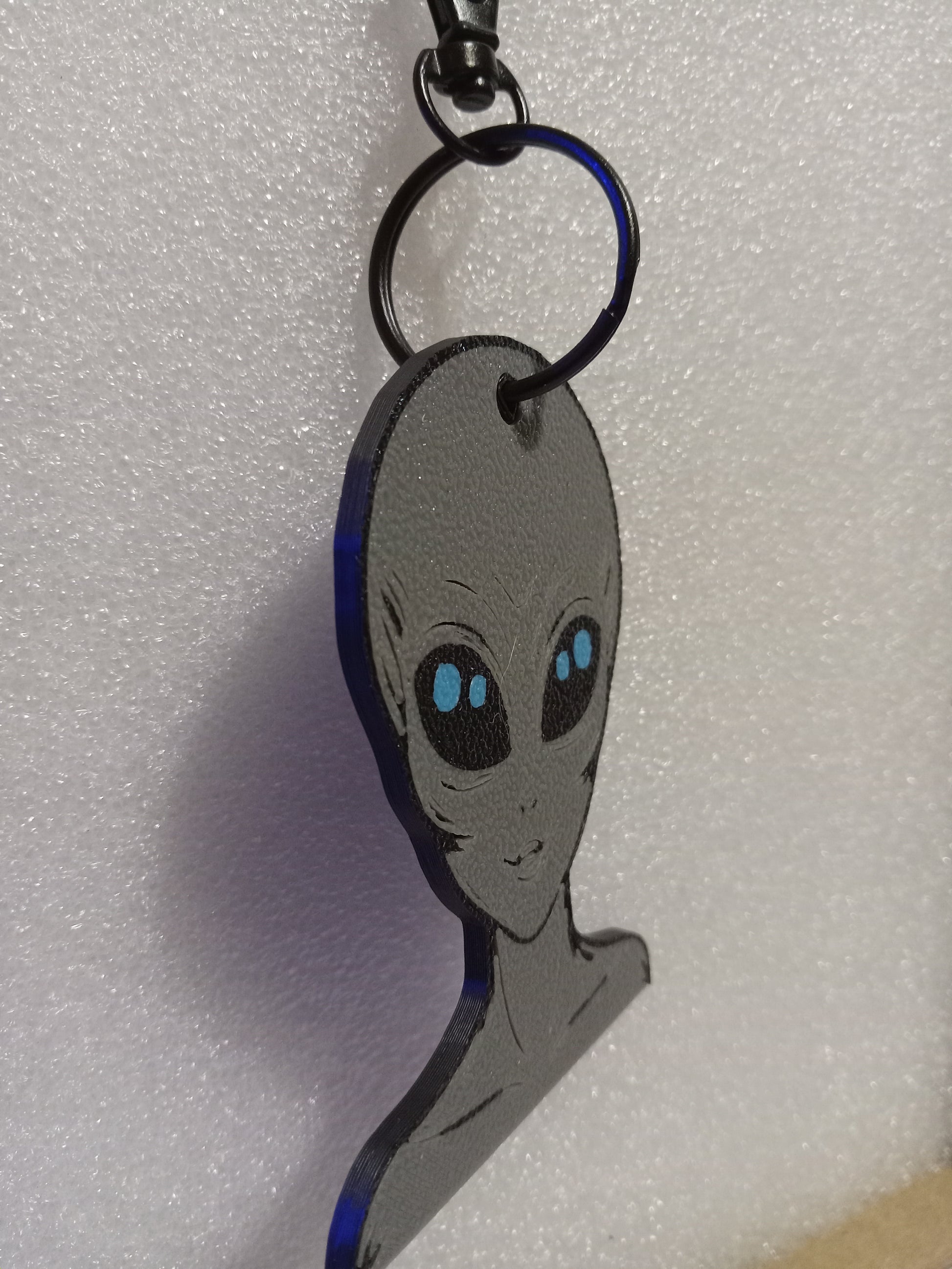 Embody the essence of the galaxy with our striking grey alien upper body keychain, radiating an otherworldly aura that transcends planetary boundaries. This captivating being is said to possess the power to connect with distant planets and unlock the secrets of the stars.