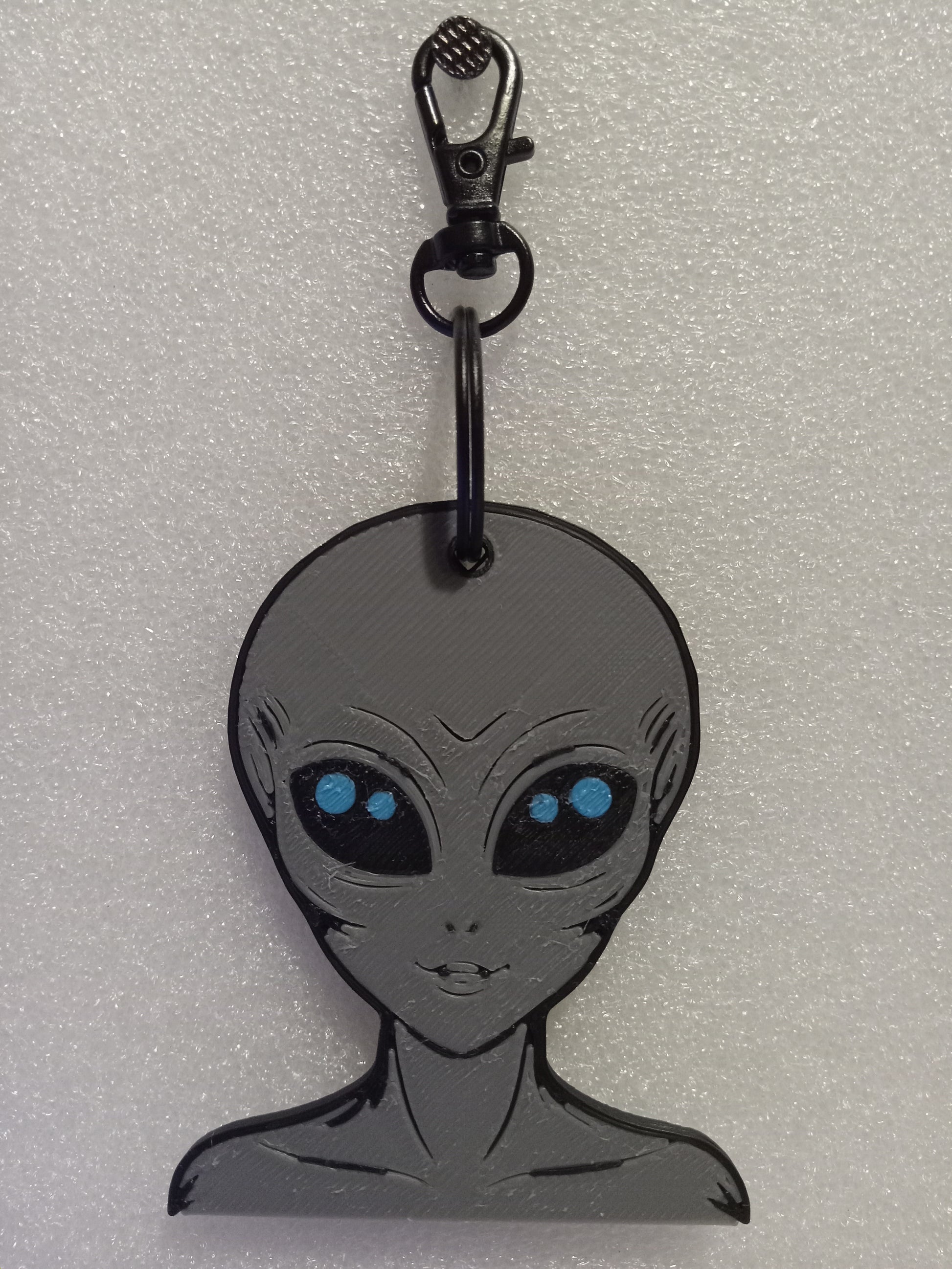 Galactic Grey/Blue Alien Keychain: A Cosmic Ambassador