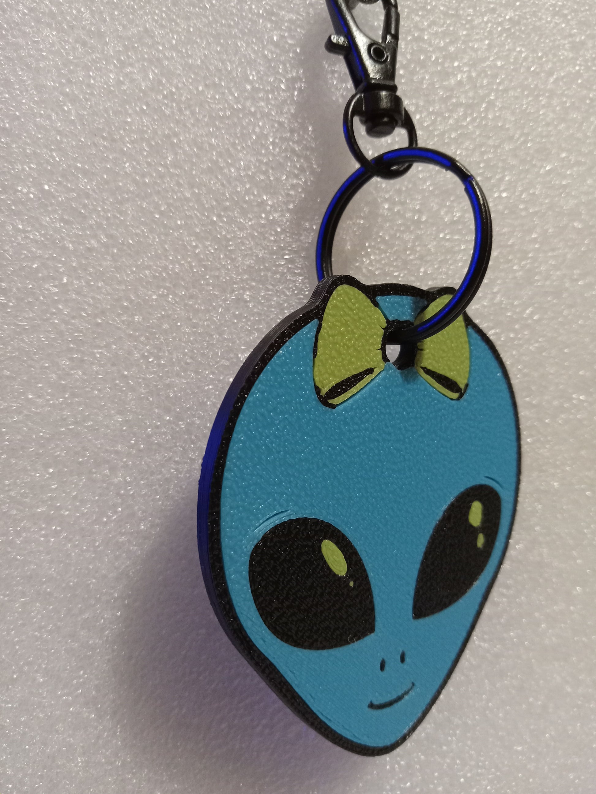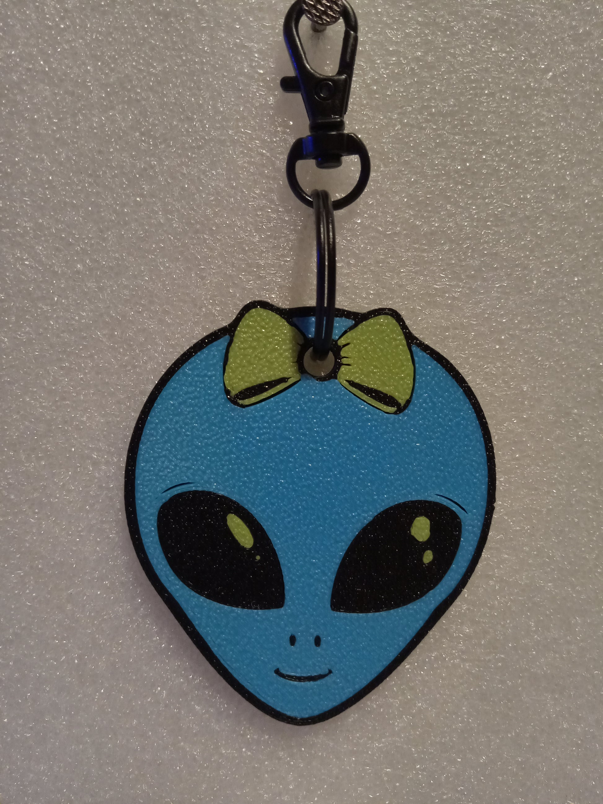 Embark on an intergalactic adventure with Lil-Ien, a charming blue alien adorned with a cute green bow, symbolizing the universal language of friendship and peace. This endearing keychain is said to possess the power to bridge cultural divides and foster harmony throughout the cosmos.Product Details